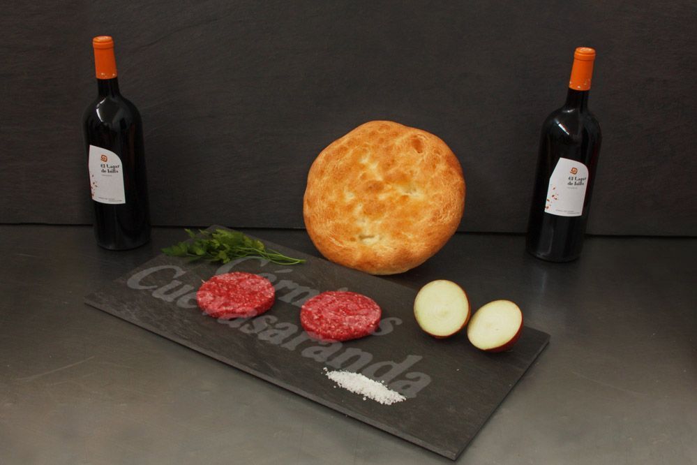 Ingredientes: carne de vacuno (80%), Cebolla, Pan rallado (harina de trigo, levadura, sal), Huevo, Agua con gas, Sal, Mostaza, Kétchup (tomate, azúcar, vinagre, almidón, sal, estabilizante (E-407, E-410, E-412), acidulante (E330), conservante (E-202, E-211), aromas naturales), Salsa barbacoa (tomate, agua, azúcar, vinagre, almidón, sal, estabilizantes (E-407, E-410, E-412), acidulante (E-330), conservadores (E-202, E-211), aroma de humo, colorante (E-150) y especias) y Tabasco (vinagre, chile rojo y sal)